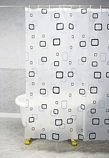シャワーカーテン 防水 防カビ 120x180cm 半透明 浴室用カーテン バスカーテン ユニットバス 浴室 間仕切り 目隠し バス用品 撥水速乾 リング付き 取付簡単 洗面所 お風呂場適用 (スクエア)