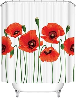 シャワーカーテン 防カビ 防水 おしゃれ かわいい 花柄 インテリア バスカーテン お風呂カーテン 窓用 ユニットバス 浴室 目隠し用 間仕切り カーテンリング付属 赤 フラワーズ 180 x 180cm アート絵画