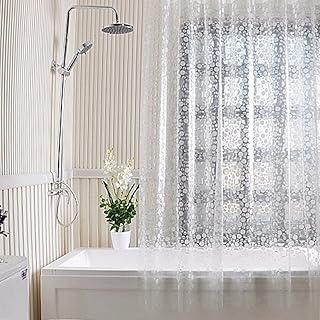 シャワーカーテン 浴室 ビニールカーテン バスカーテン 仕切りカーテン 間仕切り 仕切りカーテン ユニットバス お風呂用カーテン 防カビ 防水 浴室 洗面所 バス用品 カーテンフック付き 厚さ0.2mm 183×183cm 透明 玉石柄