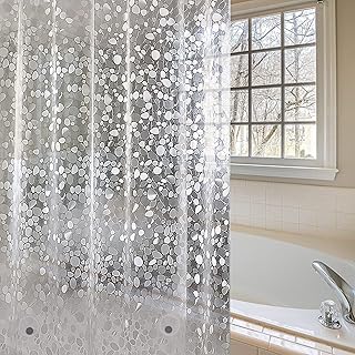 Littleliving シャワーカーテン 防水 防カビ バスカーテン お風呂カーテン 間仕切り おしゃれ 半透明 小石 玉石 お風呂カーテン 取付簡単 カーテンリング付き (120x180)
