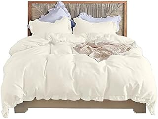 BOLUORY 布団カバー 寝具カバー 3点セット 4点セット ベッドカバー 掛け布団カバー ボックスシーツ 枕カバー シーツカバー 肌に優しい フリル付き ピーチスキン加工洗い替え速乾 洋式・和式兼用 ベッド用 布団用 冬 (ホワイト, シングル・3点セット)