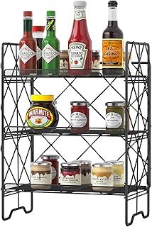 G.a HOMEFAVOR 3段 折りたたみ式 スパイスラック 調味料ハーブジャー ストレージ カウンター メタルワイヤーバスケット オーガナイザー ホルダー シェルフ キッチン キャビネット バスルーム オフィス パントリーなどに ブラック