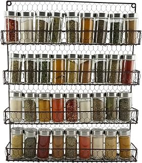 壁掛け 4段 メタル スパイスラック キッチン 金網 スパイス 整理棚 パントリー キャビネット 金網 吊り下げ スパイス 整理 収納棚 HD014M-Brown