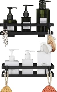 HapiRm シャワーキャディ シャワーオーガナイザー シャンプーホルダー付き 2個パック 防サビシャワーストレージシェルフ フック11個付き ドリル不要 粘着バスケットシェルフ バスルーム キッチン ランドリー用 (ブラック)