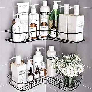 シャワー棚 内側シャワー用 2個パック シャワーコーナーキャディ 強力な粘着フック付き ドリル不要 壁 浴室 シャワーオーガナイザー トイレ キッチン 寮のコーナー(ブラック)