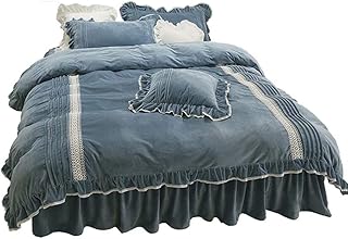 掛け布団カバー4点セット セミダブル 冬用 フリル 刺繡入り おしゃれ 寝具カバー フランネル 保温 あったか 吸湿発熱 ベッドスカート 布団カバーセット 掛け布団カバー 肌触り良い 柔らかい 毛玉なし 全開ファスナー 固定ヒモ付き 枕カバー2枚 ベッドカバー 洗える ブルー YKFN