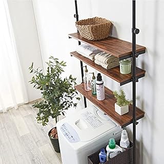 つっぱりラック 幅70cm 3段 洗濯機ラック トイレラック ラック 棚 突っ張り 簡単設置 シンプル 高さ調整 木目調 粉体塗装 スチール プリント紙化粧繊維板 省スペース コンパクト シンプル スタイリッシュ (ブラック ブラウン, 幅70cm 3段)