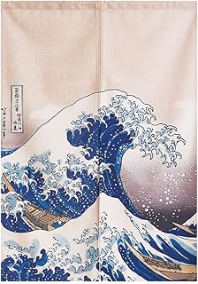 BAIHT HOME のれん 暖簾 綿麻混 神奈川沖浪裏 浮世絵シリーズ おしゃれ 室内インテリア 突っ張り棒付き 幅70cm×丈120cm